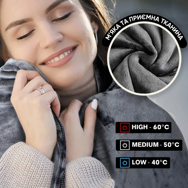 Обирайте серед 3 режимів комфортного обігріву, насолоджуйтеся ніжністю тканини та легким управлінням за допомогою однієї кнопки.